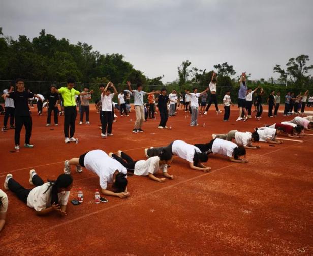 学生跑步后进行体能训练