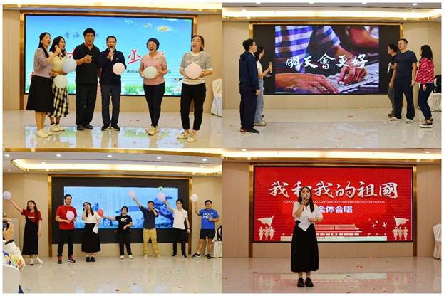 在海陵岛,各工会小组开展了丰富多彩的汇报、交流、总结活动。谢书记为大家热情洋溢地朗诵了毛主席的《七律·人民解放军占领南京》,学院领导、党委委员共同唱响《早安隆回》,苏青老师为大家高声歌唱《我们的祖国歌甜花香》,辅导员老师唱起了《明天会更好》,全体老师共同高唱《我和我的祖国》,其他老师也纷纷表演了精彩的节目,将老师们的心紧紧地凝聚在了一起。
