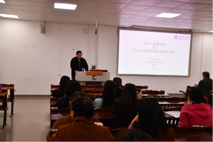12月25日下午,受学院邀请,北京交通大学计算机科学与技术学院卢思洋副教授在湖光校区明德楼A座103报告厅为我院师生作了题为“面向大数据系统的日志异常检测和根本原因分析”的学术报告。会议由副院长陈入云教授主持,约100位学院师生参加了报告会。