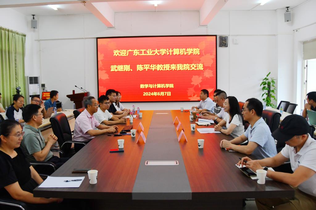 6月7日,学院邀请了广东工业大学计算机学院武继刚、陈平华两位教授在湖光校区明德楼A座405会议室做学术报告与交流。会议由学院院长彭小红教授主持,学院党委副书记农康、副院长余应淮,以及教授、博士、优硕教师共40多人参加了本次会议。