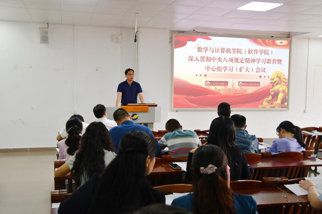 为深入贯彻落实上级党组织关于作风建设的部署要求,进一步深化党纪学习教育成效,4月9日下午,红杏视频 在明德楼A座103报告厅召开深入贯彻中央八项规定精神学习教育暨中心组学习(扩大)会议。学院领导、党委委员、纪委委员、各党支部书记、各教学系(部)正副主任、全体辅导员共30人参加会议。会议由学院党委书记龙俊主持。