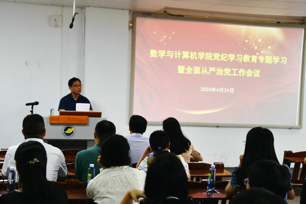 根据党纪学习教育工作部署,4月24日下午,我院在明德楼A103报告厅召开党纪学习教育专题学习暨2024年全面从严治党工作会议。学院全体领导干部、教师党员参加学习,学院党委书记龙俊以《学纪 知纪 明纪 守纪》为题作专题报告。