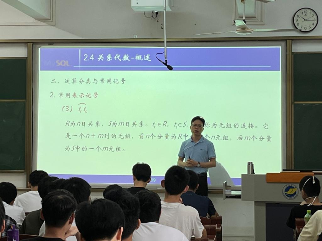 课堂上,冼远清围绕《数据库原理及应用》中的关系代数、传统综合运算、专门的关系运算等内容进行讲授,课堂上既穿插了启发式问题,也穿插了知识点练习,还有机地融入“课堂思政”元素,整个教学主题突出,结构清晰、思路清晰、内容丰富、逻辑性强,将相对枯燥的基本知识深入浅出讲解,语言表达松弛有度,声情并茂,富有感染力,得到在场观摩教师的肯定与赞赏。大家一致认为冼老师的公开课在教学内容、教学方法以及教学效果等方面均取得了较好的预期效果,对学院整个课堂教学工作具有一定的学习借鉴意义。