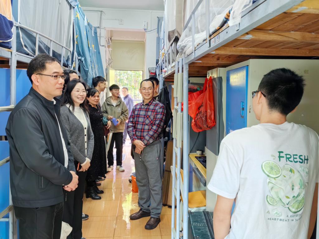 3月4日,党委书记龙俊、院长彭小红、党委副书记农康、副院长陈入云与全体辅导员一起深入到“一站式”海安社区学生宿舍、党团之家、心灵驿站、创客工坊,查看学生的住宿条件,了解学生开学情况,仔细征询同学们对学院教育教学、管理服务及一站式”社区建设等方面的意见和建议。