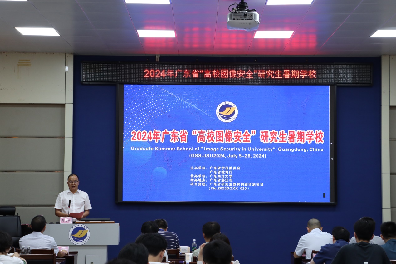 开幕式上,周昌仕代表学校对参与本暑期学校的学生表示热烈的欢迎,他介绍了我校的基本情况和本次暑期学校的安排,希望各位专家在暑期学校期间对我校科研和人才培养工作,特别是对图像安全研究领域方面多指导,多提宝贵意见,希望各位研究生能利用本次暑期学校的宝贵机会,能够深入对该领域进一步探讨,拓宽视野,提高专业素养。