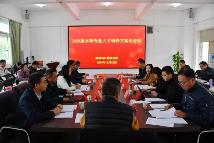 于12月25日-26日在湖光校区明德楼A座405室召开了2025版本科专业人才培养方案论证会,对计算机科学与技术、软件工程、物联网工程、数据科学与大数据技术、信息与计算科学、信息管理与信息系统以及拟申报的人工智能专业,共7个专业的人才培养方案进行了论证,学院领导班子全体成员以及各系全体教师参加了会议。