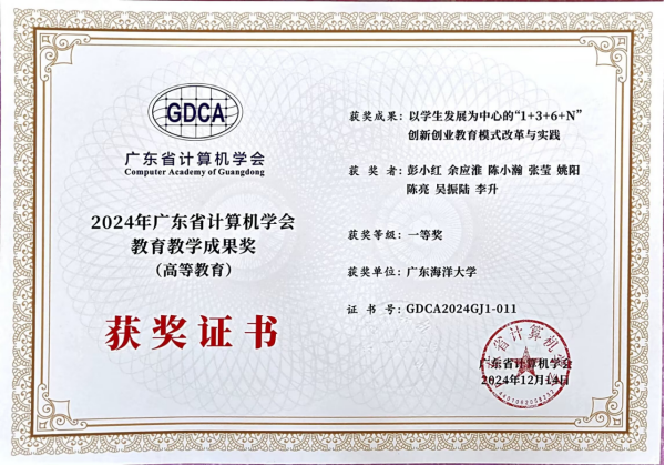 该项成果以“创新创业实践基地”为平台,构建了“四位一体”的课程体系和“四有导师”队伍,结合海洋特色,组建了跨专业的学生团队。通过产教融合,建立了校企协同育人机制,并完善了制度保障,形成了全链条的创新创业实践教学体系。经过十年的探索与实践:学生创新创业能力显著提升,获得省级以上竞赛奖励467项,立项148项双创项目,发表论文47篇,获得专利23项,软著95项,创立公司31家;教育教学改革取得重大突破,学院获得国家一流专业1个,教育部工程教育专业认证通过专业1个,广东省特色专业1个,教学团队1个,省级教改项目44项,发表教学论文41篇;基地建设成效显著,创新创业平台不断提升,在三种模式推动下,创建优秀学生团队12个,培育“四有导师”队伍24人,基地获得广东省“青创空间”示范点1个,双创示范基地1个,湛江市大学生创新创业孵化基地1个。