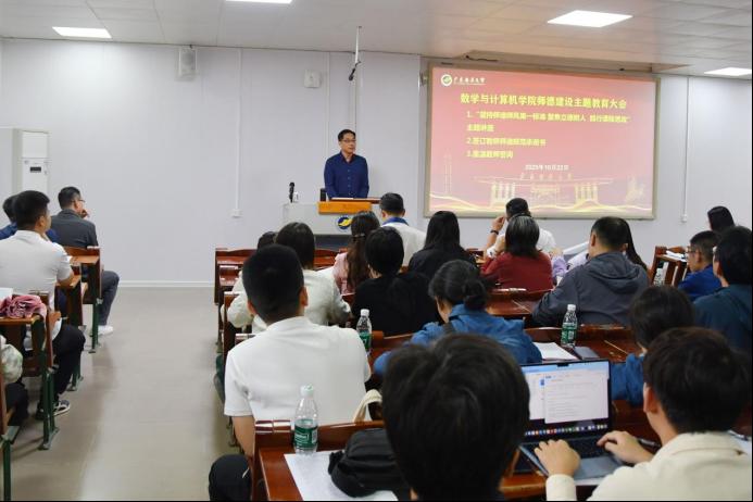 于10月22日在明德楼A座103报告厅召开师德建设主题教育大会,学院党委书记龙俊主持,学院全体教职工参加了大会。