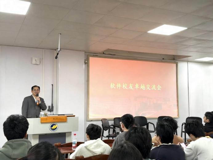 “软件校友卓越交流会(第一期)”在明德楼A103顺利举行。交流会邀请四位软件工程专业2018届校友——中国银行(香港)应用开发经理韩天逸、广东好太太科技集团软件应用工程师伍培达、海南航空飞行员祝剑锋、廉江市妇幼保健院科员苏悦君返校分享。学院党委副书记农康出席并致辞,辅导员张艺主持活动,软件工程系副主任刘桃丽及近100名软件工程专业学生共同参与。
