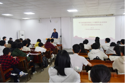 党委书记龙俊深入基层学生班级,为2025级信管1251班、信管1252班的同学们召开了一场以“学习党的二十届四中全会精神,努力成为堪当重任的时代新人”为主题的班会。班会由班主任冼远清老师主持,全体同学参与。