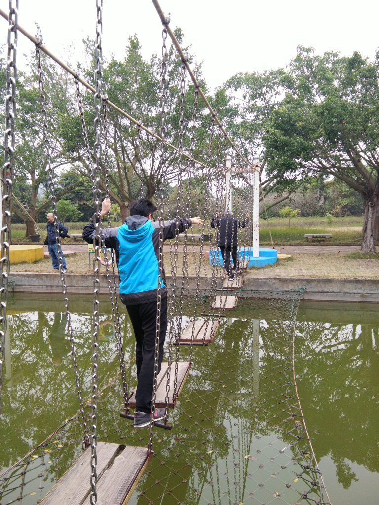 森林公园内树木葱郁、鸟语花香、空气清新。在清风徐徐、冬日暖阳中, 老师们绕着森林公园徒步一圈。在徒步中,老师们欣赏着一路的美景,分享徒步的快乐心情。此外,老师们还开展了“走趣味桥”的文体活动,公园里设有晃板桥、脚蹬桥、吊环桥、梅花桥、钻圈桥、悬索桥等十座造型各异的桥。每座桥的过桥方式都不相同,充满惊险和新奇,不仅能让人体会到成功的喜悦,还能磨练意志。