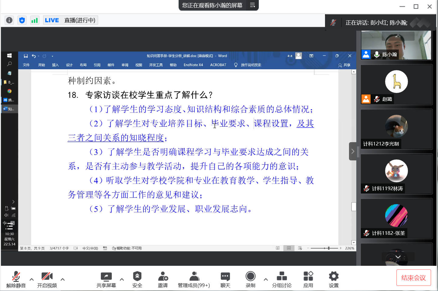 在腾讯会议室开展计算机专业学生专项培训会。会议由计算机专业认证核心组成员陈小瀚主讲,学院党委书记谢仕义、院长彭小红、党委副书记周荣伟、计科系主任余应淮、分管辅导员及计算机专业学生共550余人参加。