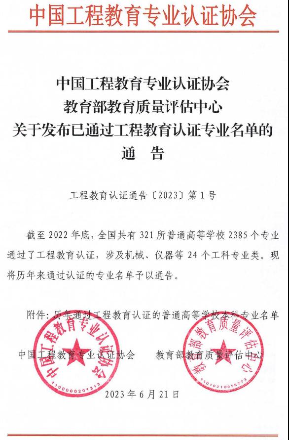 近日,《中国工程教育专业认证协会教育部教育质量评估中心关于发布已通过工程教育认证专业名单的通告》(工程教育认证通告〔2023〕第1号)正式发文,红杏视频 计算机科学与技术专业顺利通过认证,有效期为6年(2023年1月至2028年12月)。标志着我院计算机科学与技术专业建设水平取得了历史性突破,实现了专业人才培养质量的国际实质等效,进入了全球工程教育的“第一方阵”。